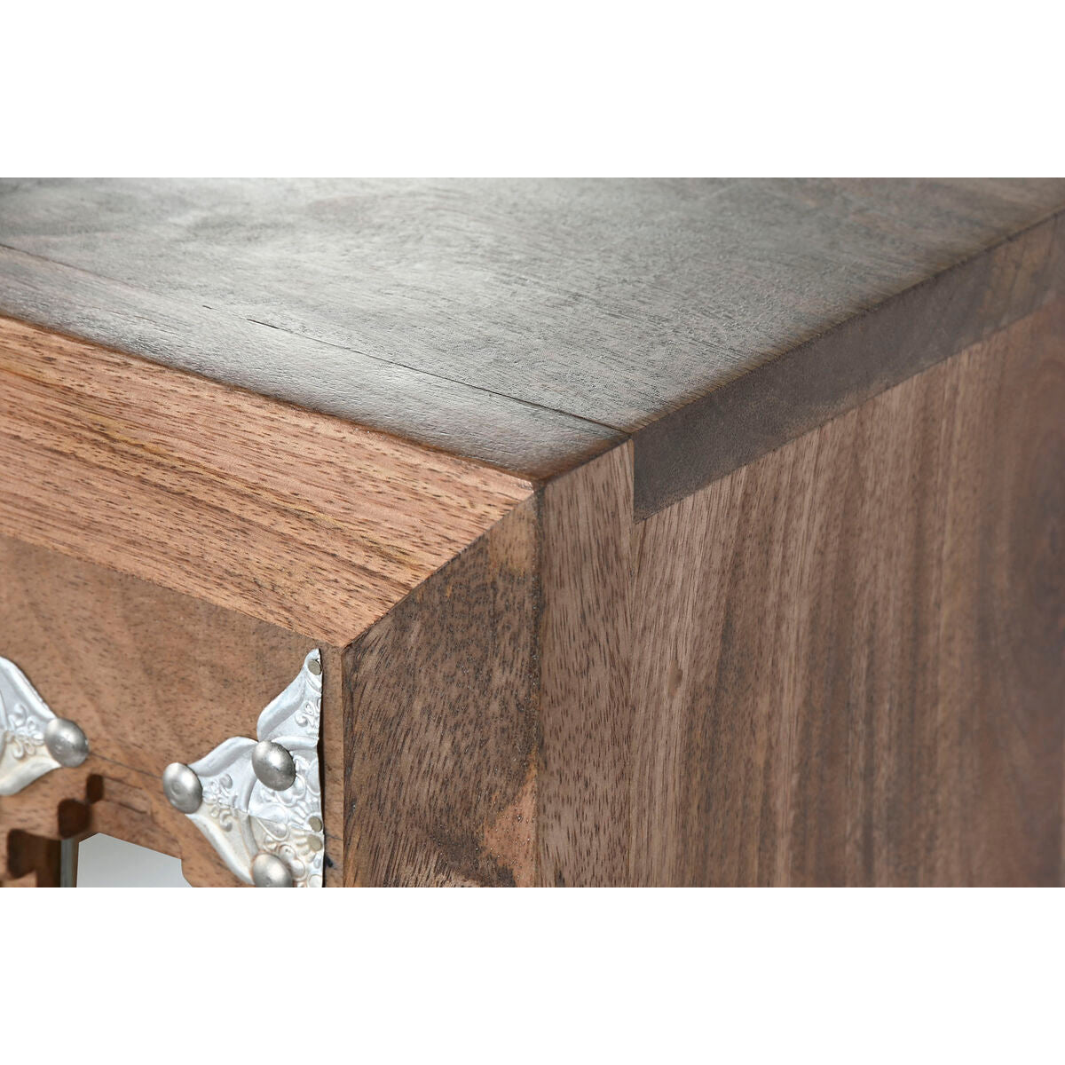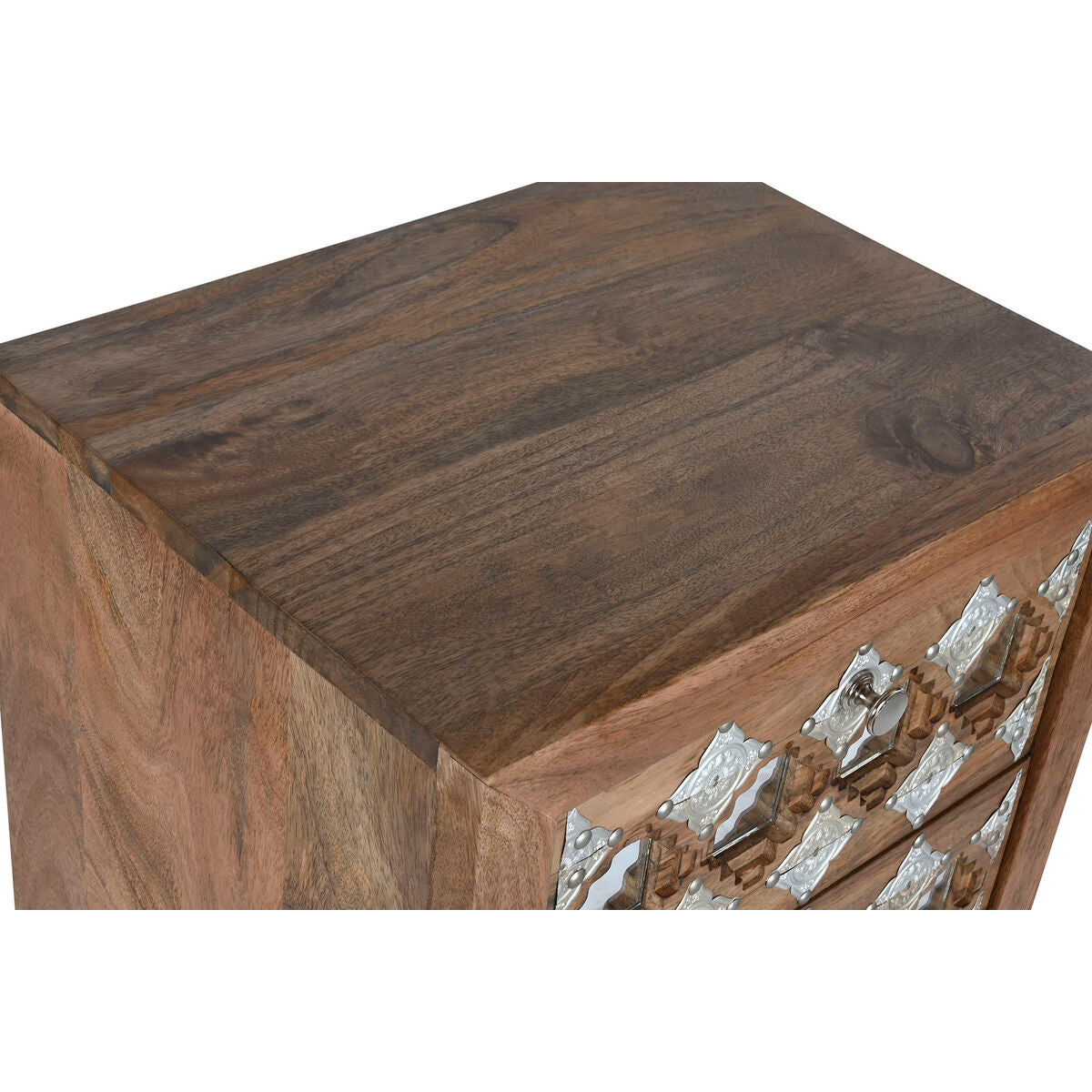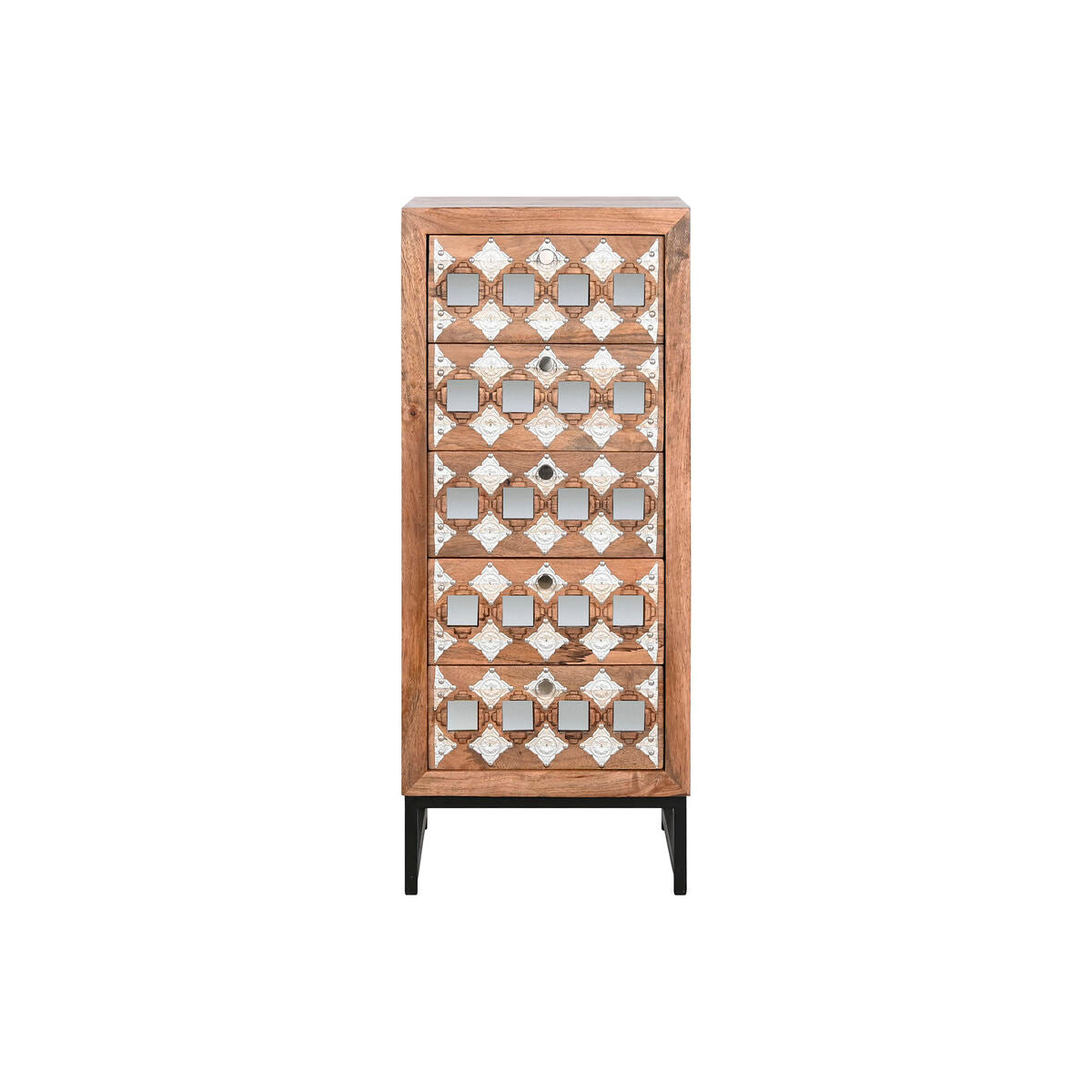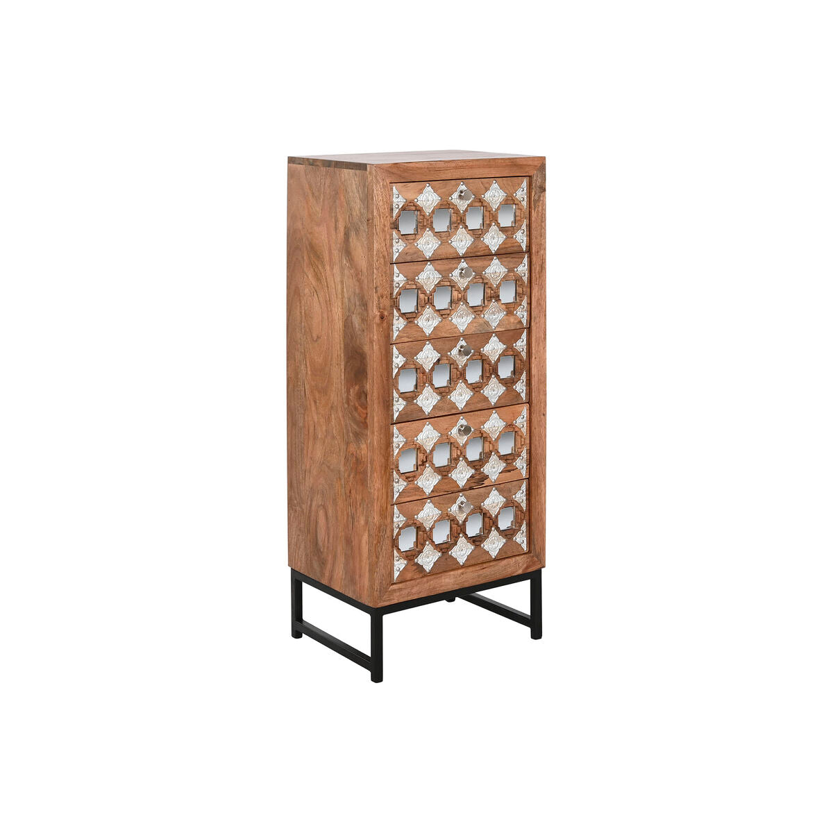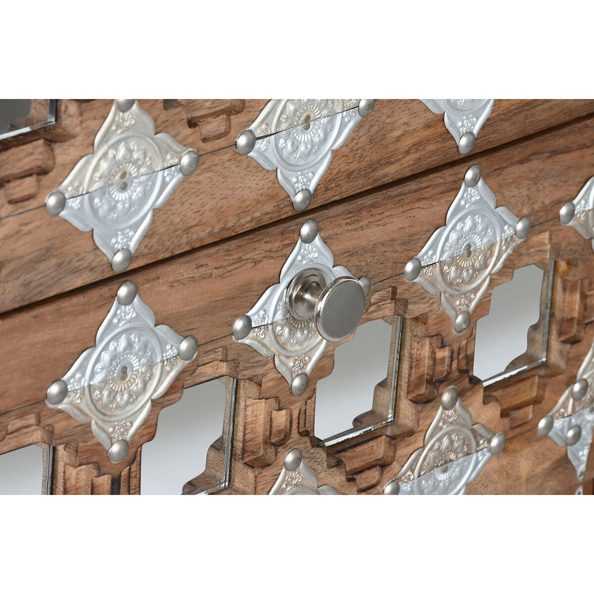 Fiókos Szekrény Home ESPRIT Barna Fekete Ezüst színű Mangófa Tükör Indiai Férfi 45 x 35 x 105 cm