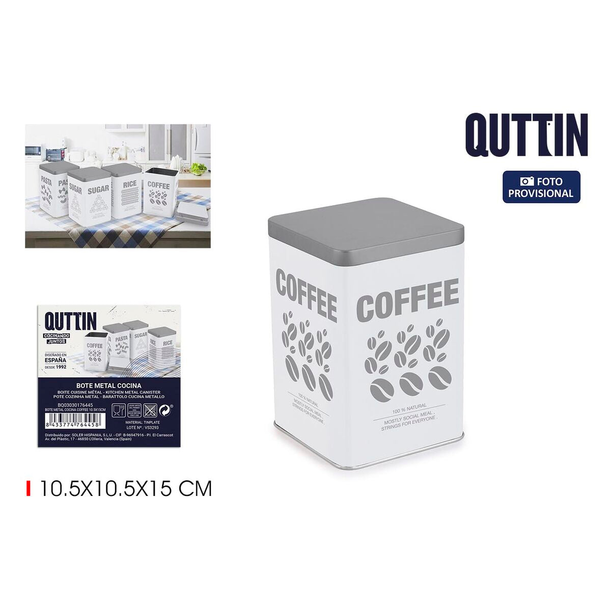 Barattolo in Metallo Quttin COFFEE Metallo 10,5 x 10,5 x 15 cm (12 Unità)