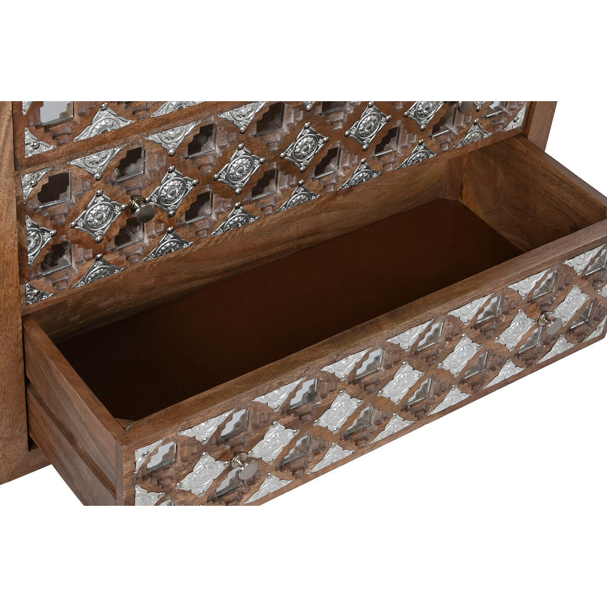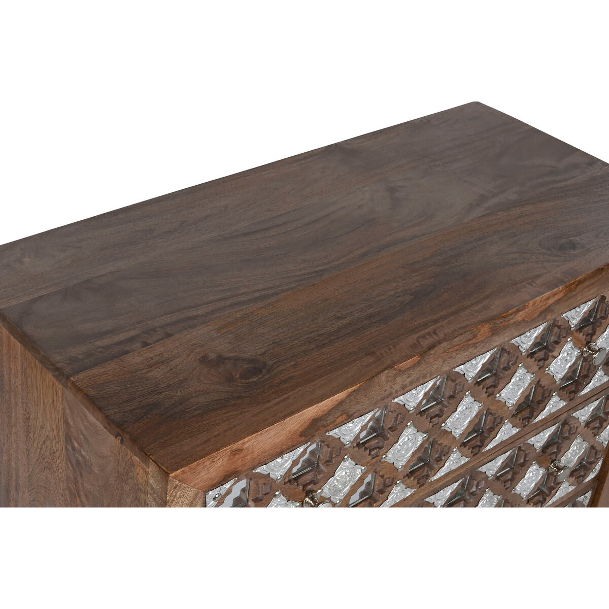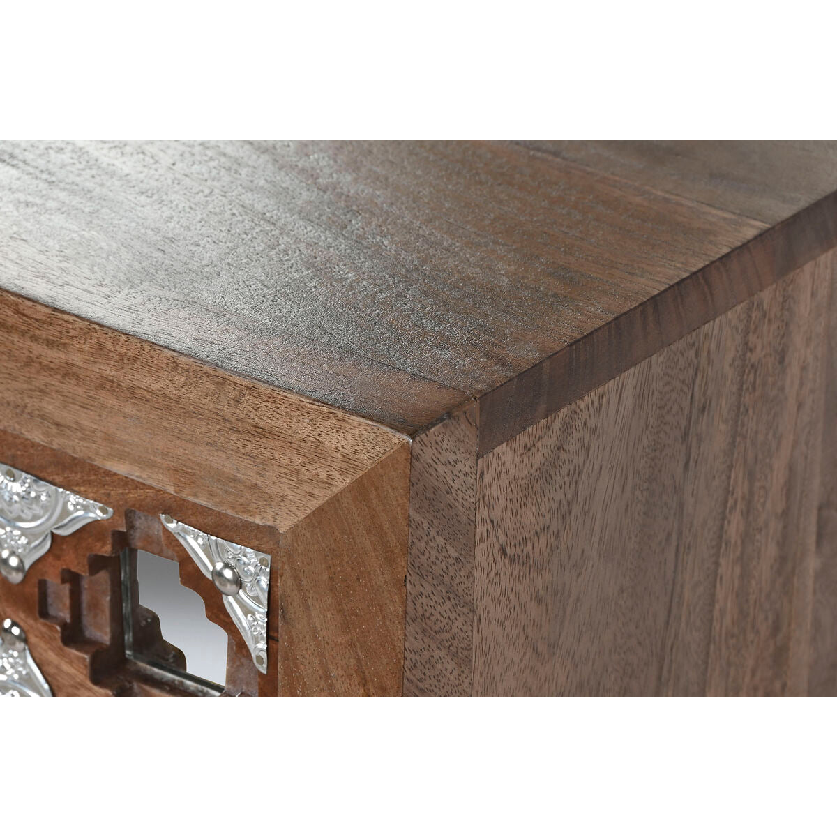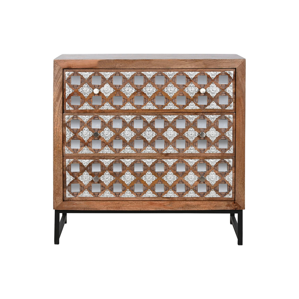 Chest of drawers Home ESPRIT Brown Black Silver Mango wood Mirror Indian Man 80 x 38 x 80 cm