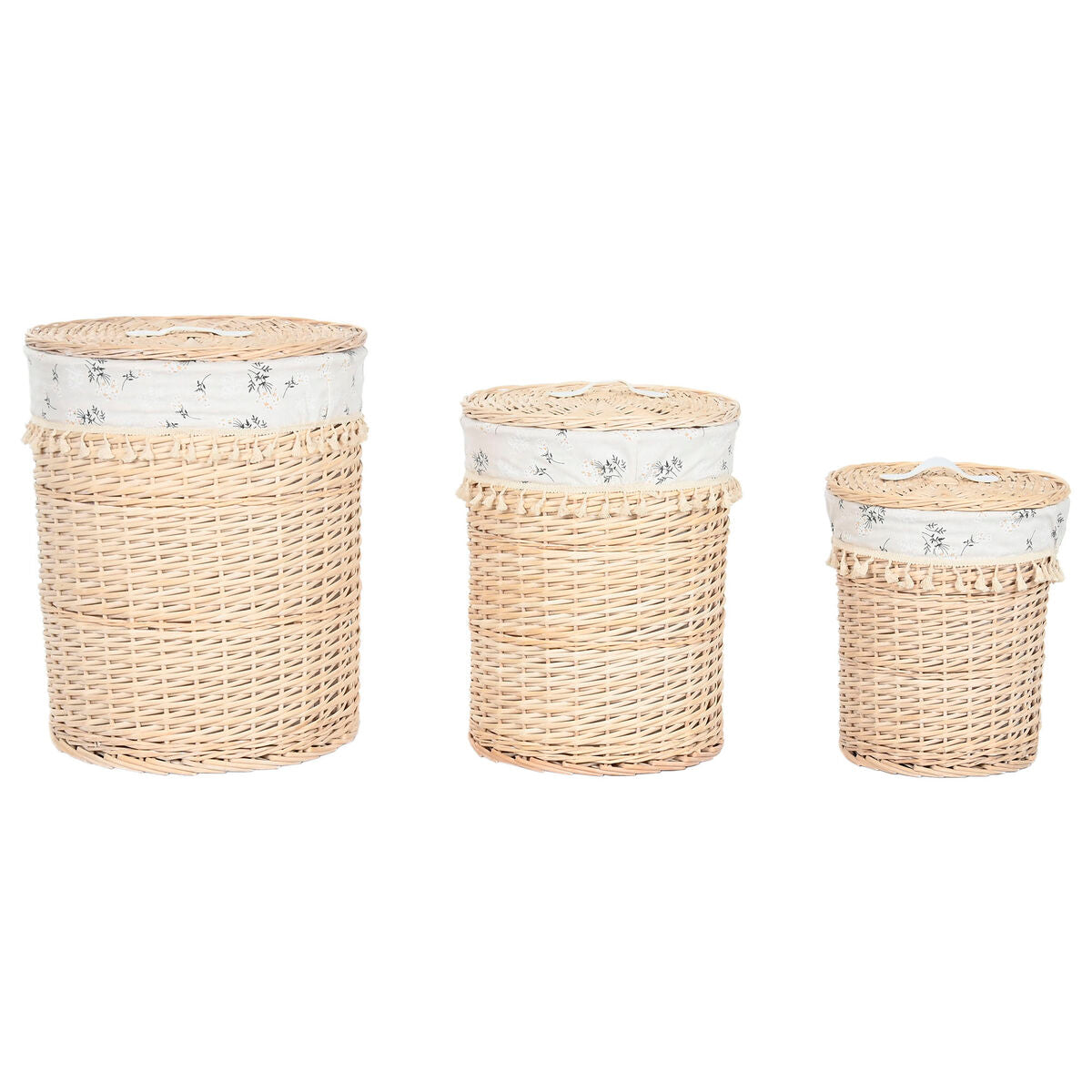 Laundry basket Home ESPRIT Natural wicker Shabby Chic 45 x 45 x 55 cm 3 Pieces