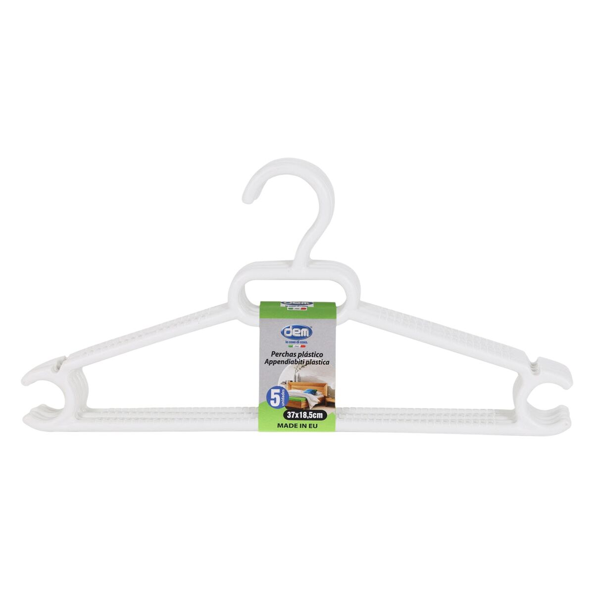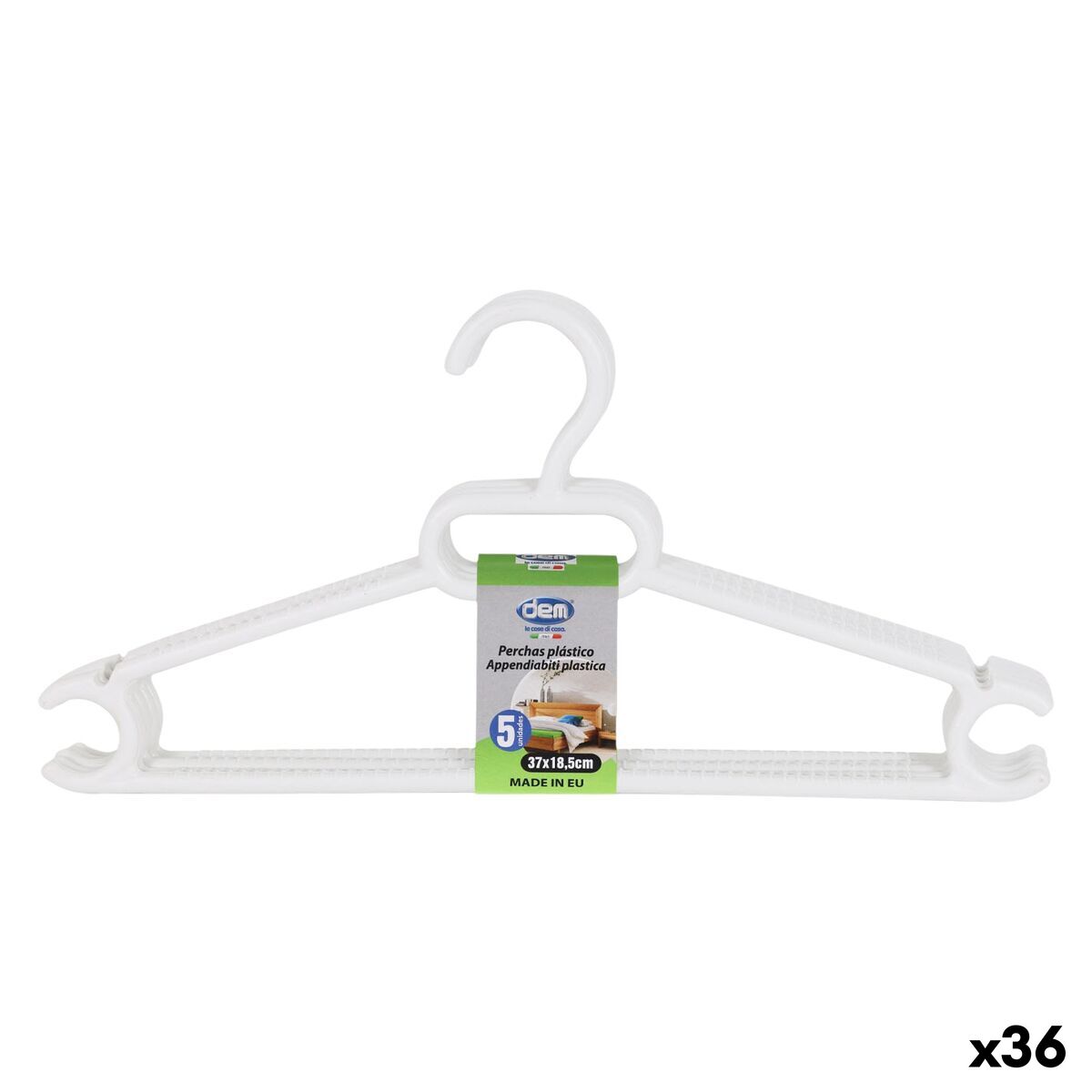 Set of Clothes Hangers Dem White Plastic 0,5 x 37 x 18,5 cm 5 Pieces (36 Units)